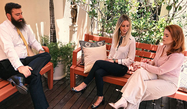 Esse espaço cercado de mais de uma centena de plantas, habitado por pássaros e confortavelmente mobiliado, principalmente com móveis de madeira bruta para uma melhor integração linear com os elementos da natureza, passou então a ser dividido com nossos clientes, parceiros do mundo jurídico e amigos em geral.